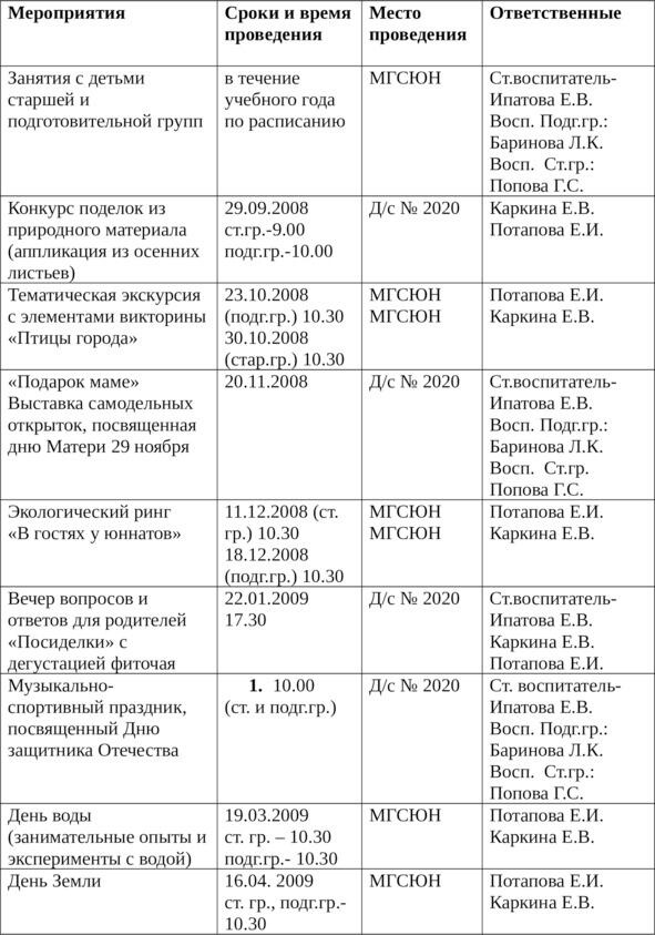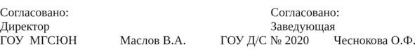 План совместных мероприятий ГОУ Д/с 2020 и ГОУ МГСЮН