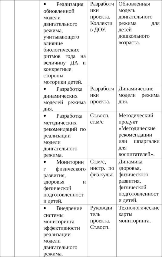разработку динамических режимов дня и модели двигательного режима детей дошкольного возраста в соответствие с особенностями природно-климатических условий Крайнего Севера и биологических (сезонных) ритмов года.