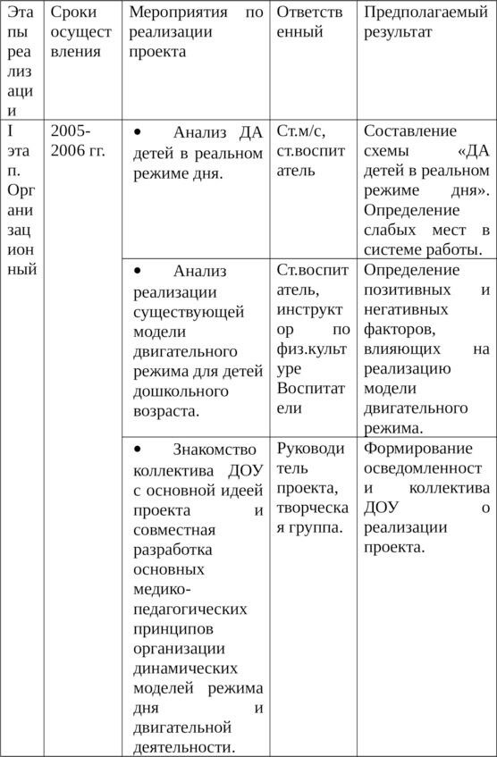 Материалы, полученные в процессе реализации модели двигательного режима в МДОУ ЦРР-д/с 53? позволяют говорить о его эффективном влиянии на показатели здоровья, физического развития, физической подготовленности и двигательной активности детей. Данная модель двигательного режима рассматривается как один из возможных вариантов организации физкультурно-оздоровительного процесса, основанного на реализации основных требований к двигательному режиму, а также условий ДОУ экологической обстановки, материально-технической базы, количества и состава возрастных групп, состояния здоровья и физического развития детей, уровня их двигательной активности и физической подготовленности.