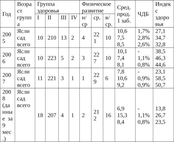 К концу 2008г. отмечено перераспределение детей по группам здоровья. Значительно уменьшилось количество детей III гр. здоровья и увеличилось число детей II гр. здоровья.
