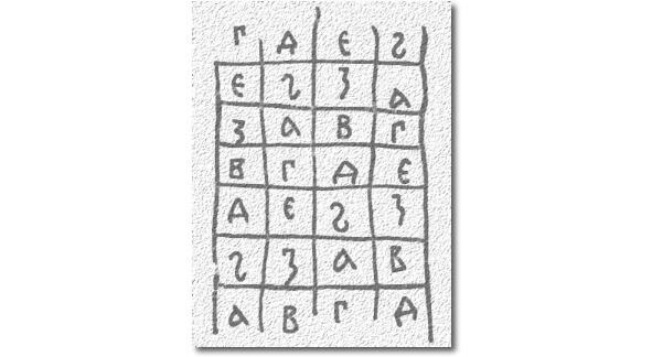 Эта календарная таблица, была обнаружена на стене Софийского собора в Киеве (Древняя Русь, XIII век). Эта таблица читается слева направо и снизу-вверх. Високосные годы находятся в четвёртом столбце.