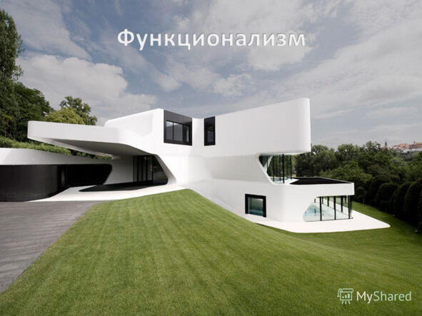 Бу услубда Ле Корбюзье, А. Аалто сингари кўпгина меъморлар ижод қилган. Функционализмга хос бўлган белгилар қуйидагилардан иборат: