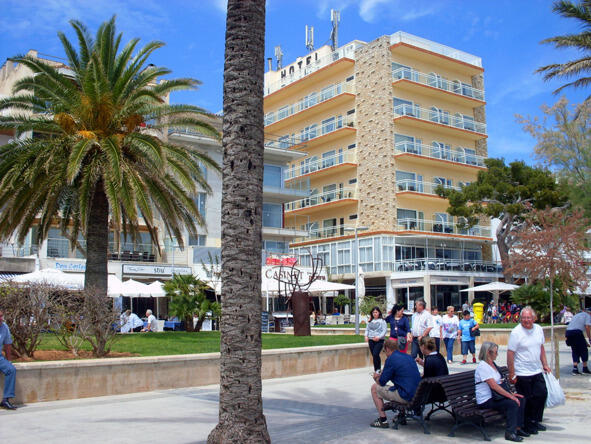 Сажусь на велосипед. Ехать мне вдоль берега километров двенадцать, до поворота перед городком Can Picafort. Машин на дороге становится меньше и дорога чуть сузилась. Ехать комфортно. Но не оправдалась надежда на то, что морские пейзажи слева по ходу украсят прохождение этого участка. Слева от дороги лесные посадки плотно закрыли вид на залив так, что ни разу не довелось его увидеть. Так и еду, вроде, вдоль берега моря и как бы, вдали от него. Вскоре впереди замаячили городские постройки, а справа обозначился поворот. Не мой ли? Запоминаю его и еду прямо, въезжая в городок.