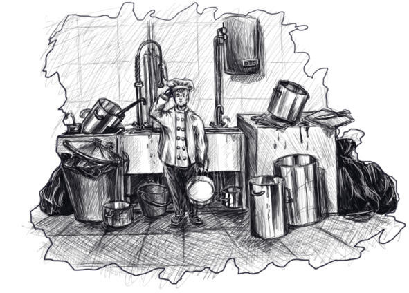 Но здешних поваров, судя по всему, все и так устраивало. Так, когда в конце запары я поднял с пола стопку грязных гастроемкостей, которые просто не помещались в моечной, чтобы их помыть, из-под этой стопки в разные стороны побежали тараканы. Бррр. Просто жесть.