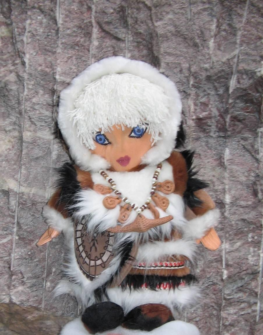 Пока Люба представляла «пришельца» мы успели рассмотреть малыша. В свете костра, его смуглая кожа казалась красноватой. Светлые большие как у лани глаза, очень тонкий и узкий как трубочка нос, острый подбородок и маленький рот. Густые светлые волосы до плеч обрамляли скуластое личико. Чтобы волосы не мешали смотреть, они спереди были подхвачены костяным ободком. Одет Ушен был в меховые колготки и меховую парку с капюшоном. На груди висело костяное ожерелье: мелкие бусинки чередовались с костяными «матрешками», а в центре была большая веретенообразная бусина. На кожаном ремешке, через плечо висела кожаная сумка со странным рисунком: в центре овального кольца, обвитого шнуром, был схематически изображен человечек с пятью Т- образными антеннами на голове, справа нарисован полумесяц с четырьмя точками, видимо звездами, а слева астрологический знак солнца тоже в окружении звезд.