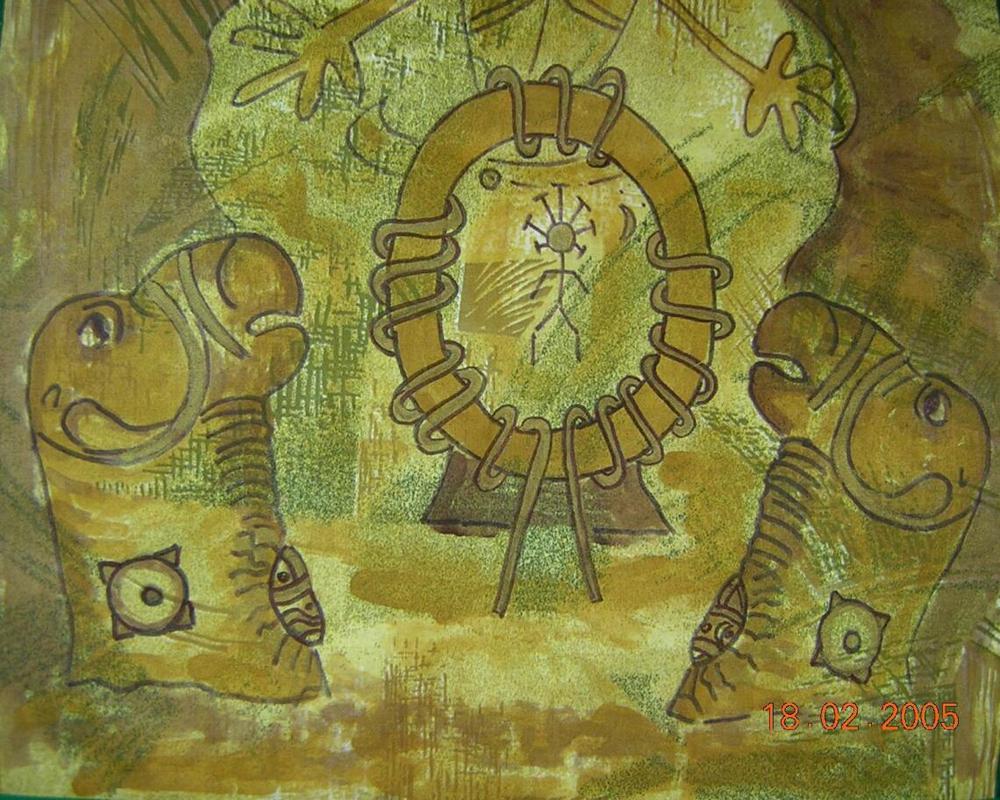 Айлет, теперь ты первый мамонт шаман, Ушен забыл свою напускную серьезность, забыл свою важную миссию проводника пришельцев в святилище духов, он обнимал своего мамонтенка скрученного в виде коврика и поставленного столбиком, прыгал от радости вокруг этого столбика, что-то напевал, казалось, он совершает магический ритуал.