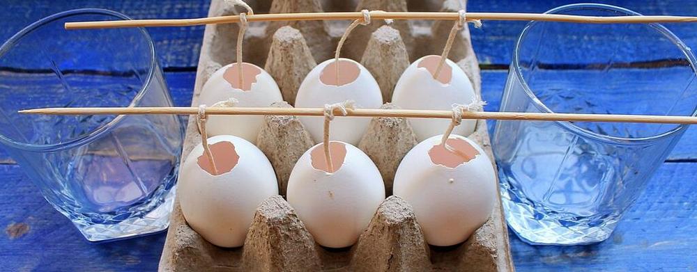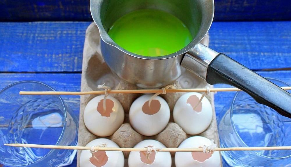 скорлупа от яиц, максимально цельная, желательно, чтобы в верхушке было открыто отверстие диаметром около двух сантиметров;