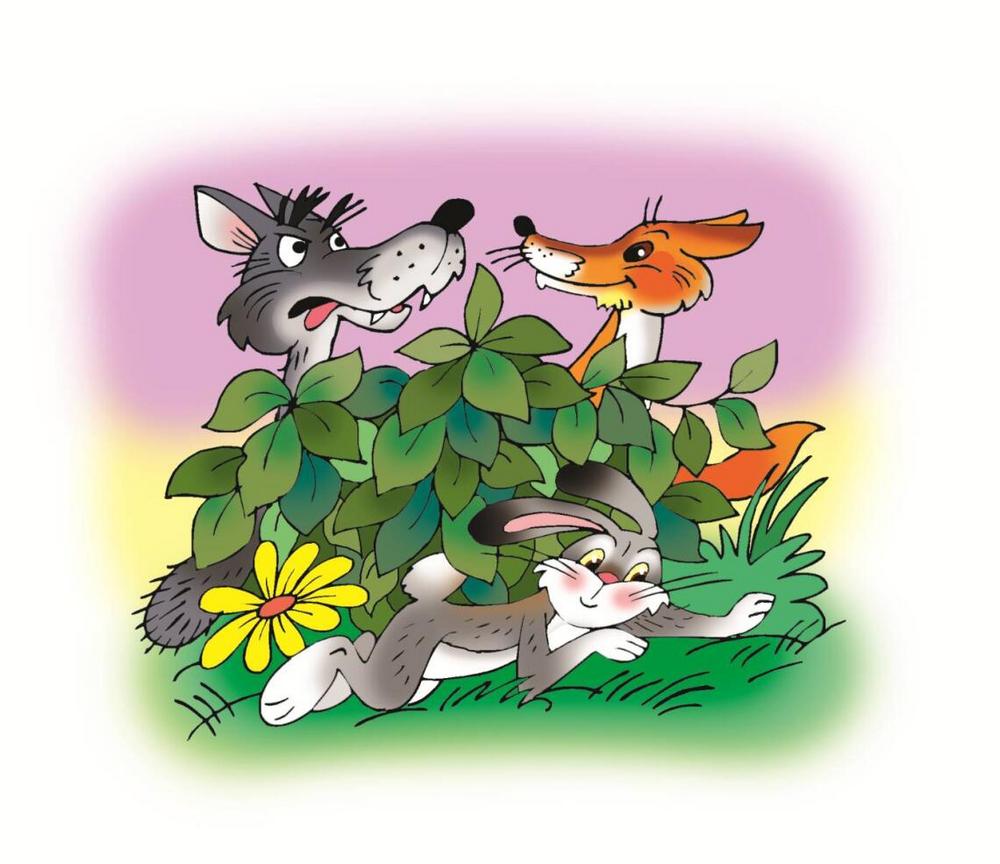 Скачет Зайчик по полянке и видит: на пригорке отдыхает серый Волк. Отдыхает и ничего не делает.