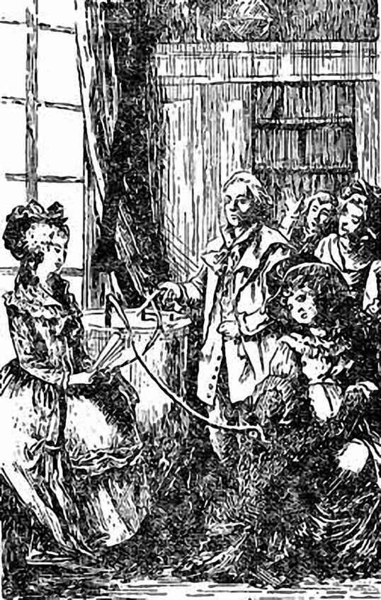 Месмер гипнотизирует пациенток магнетизированной водой с помощью бакэ. Худ. О. Ренар.