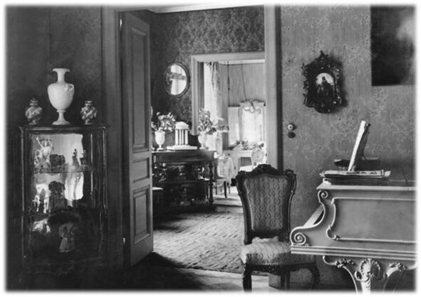 Перед высокой, стёганной, как ватник, дверью они остановились, и бабушка нажала на кнопку звонка. За дверями послышались шаги и покашливание, потом всё стихло видимо, их разглядывали в глазок и наконец, дверь открылась. На пороге стояли две старушки, одетые как на выход: в тёмных с бежевой искрой шерстяных платьях одинакового фасона, только у одной платье было вишнёвым, а у другой синим. Да, они явно собирались уходить, потому что обе были в туфлях и чулках.