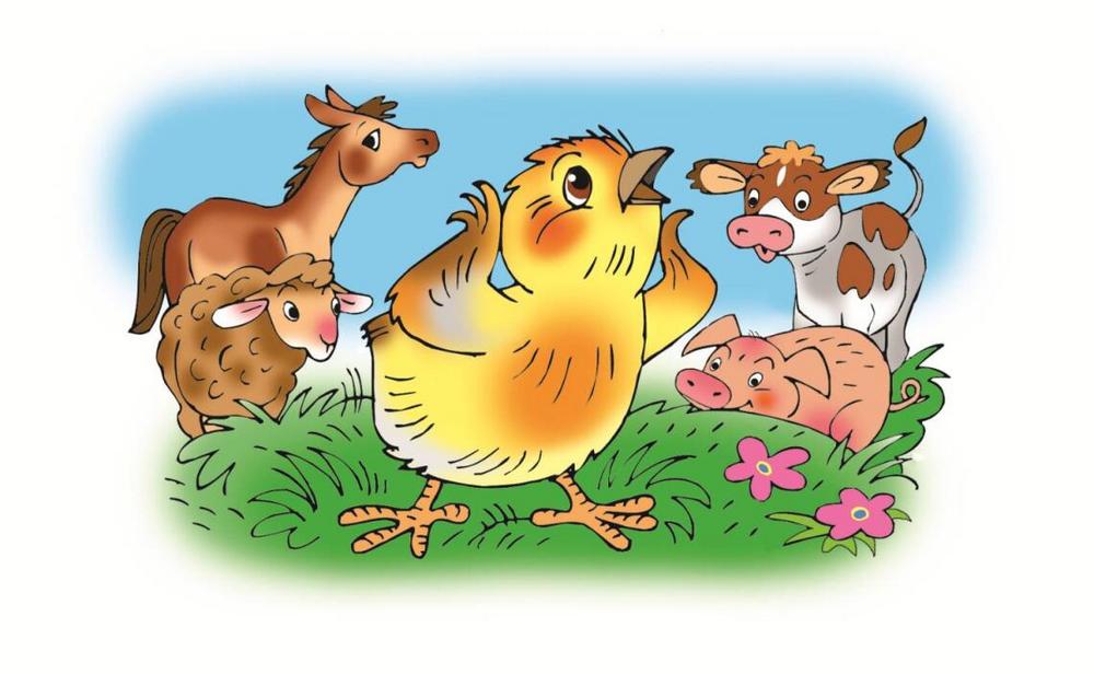 Появился на свет Цыплёнок, окружили его домашние животные и представились но-воявленному: кто есть кто?