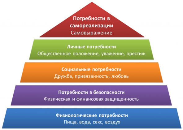 То есть, образно выражаясь, человек чувствует себя счастливым, когда у него всѐ круто) Комфортные бытовые условия, финансовое благополучие, ровные, здоровые отношения с самим собой и близкими. Хорошо это показано в пирамиде Маслоу (иллюстрация из Интернета):
