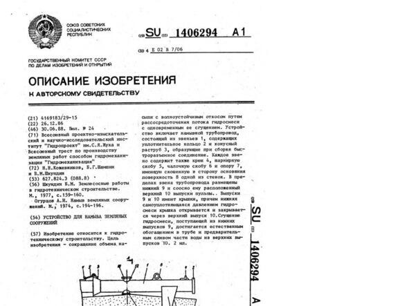 Мое сотрудничество с Борисом Марковичем приносило реальную экономию капитальных вложений, описание авторского свидетельства SU 1406294 A1 приведено ниже.