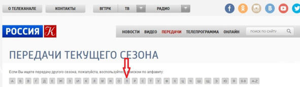 Заходите на сайт https://tvkultura.ru. В меню выбираете «Передачи», появляются буквы алфавита, кликаете на «п», так как «полиглот».