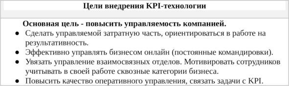 Обычно меня спрашивают: «А для чего вам вообще нужна программа KPI-Drive? По какой причине вы решили ее внедрить?». Основная цель, которую я, как собственник бизнеса, определила для себя при внедрении системы KPI-мотивации, заключалась в повышении управляемости бизнеса в режиме онлайн. Дело в том, что у меня нет возможности находиться на работе каждый день. Но мне, тем не менее, необходимо знать и понимать, что в компании происходит (таб. 1).