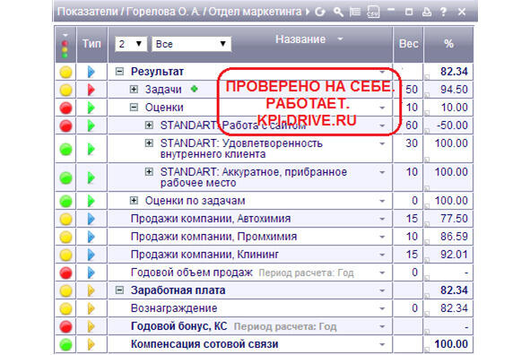 Обратимся к показателям нашей компании. Основной из них это продажи по трем основным направлениям нашей деятельности (автомобильной и промышленной химии, а также средств для клининга). В нашей компании в конце года руководителям структурных подразделений выплачивается бонус, конечно же, при условии 100-процентного выполнения плана. Причем у каждого из руководителей он разный. У тех, кто занимается продажами либо влияет на них, как, например, маркетинговое или сервисное подразделения, годовой бонус выше. А у бухгалтерии и технической службы, которые выполняют вспомогательные функции, годовая премия чуть меньше.