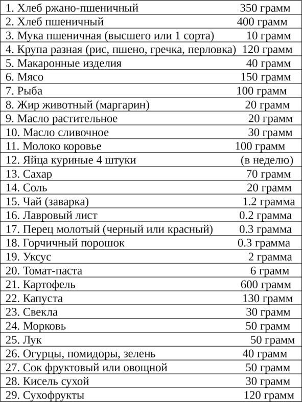 Нормы суточного довольствия военнослужащих сухопутных войск Советской Армии.