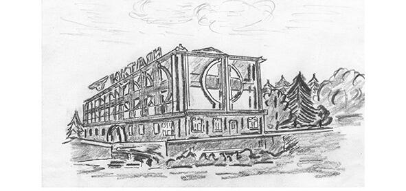 В проём окна медленно вплыло здание вокзала первый этаж был обычной высоты, а второй высился громадными круглыми окнами, крест-накрест перечёркнутыми поперечной коричневой вставкой и вертикальными колоннами. В центре здания, в круглом диске, чем-то похожим на чеканку, размещались часы, над ними надпись «Юктали». Ниже ярко красными буквами на белом поле, лозунг «Решения XXVII съезда КПСС в жизнь!»