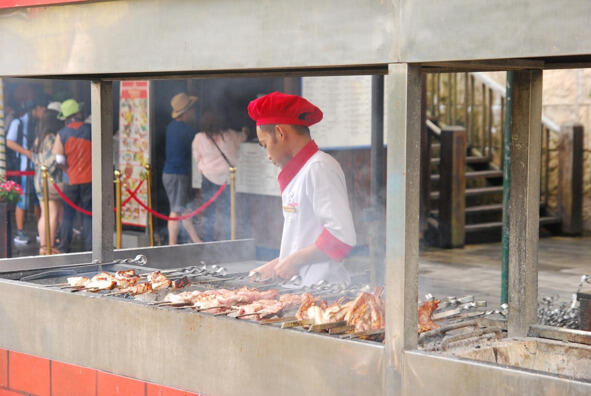 Еда вначале готовится на ресторанной кухне, а затем отправляется в места намечаемых мероприятий.