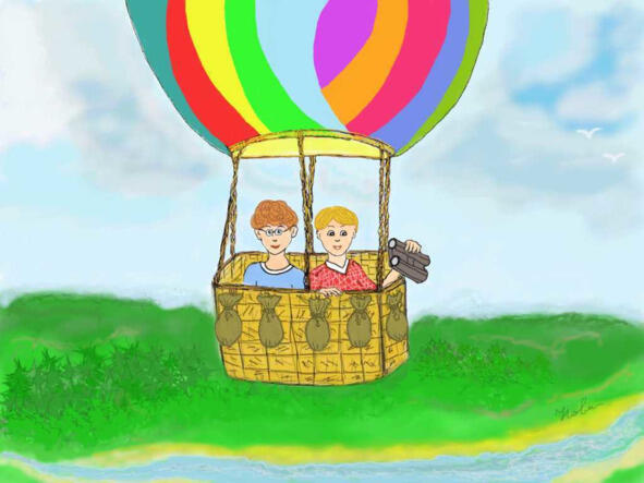 Ночью неугомонному Мишке приснились он сам и Серега на воздушном шаре.