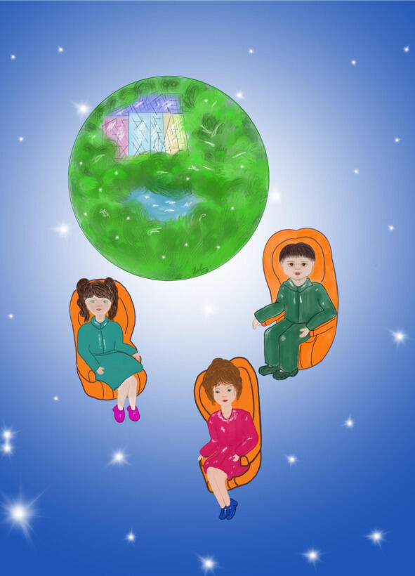 К его удивлению, «точки» превратились в мальчика и двух девочек, которые сидели на удобных креслах, перемещавших их в пространстве.