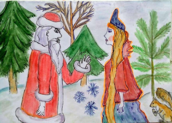 Уже наступил март. Хоть снег не весь растаял, но принц не мог больше терпеть и спешил на место назначенной встречи. Только он стал натягивать сапоги, как в зал вошла невеста: