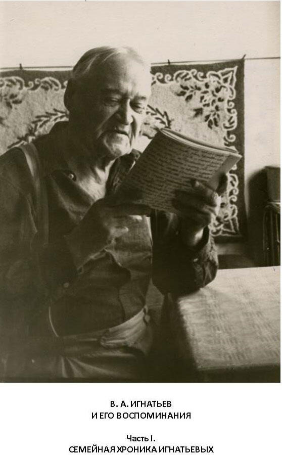 «Семейная хроника Игнатьевых» является первой частью полной публикаций воспоминаний В. А. Игнатьева. Это сборник его очерков о родителях, братьях, сёстрах и родной тётушке, основанный на «Семейной хронике Игнатьевых» в «пермской» и «свердловской коллекциях», а также на биографических очерках о родственниках.