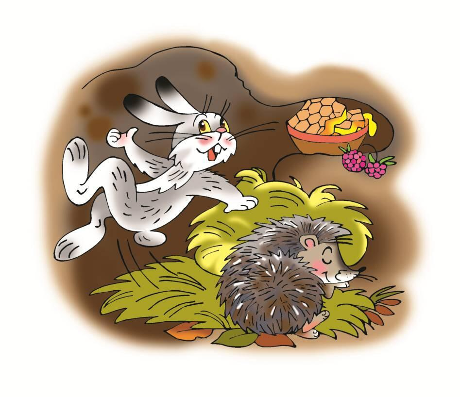 Расположились Волк и Заяц рядышком, и тут же уснули, а хитрая Лиса ласковым медо-вым голоском прошептала Ежу: