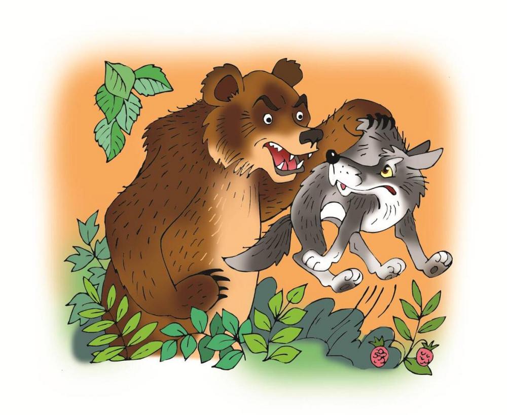 И чтобы вздорные гости, Волк и Лиса, не шумели, уложил их Мишка в дальнем углу берлоги, а безобидных Зайца и Ежа в ближнем.