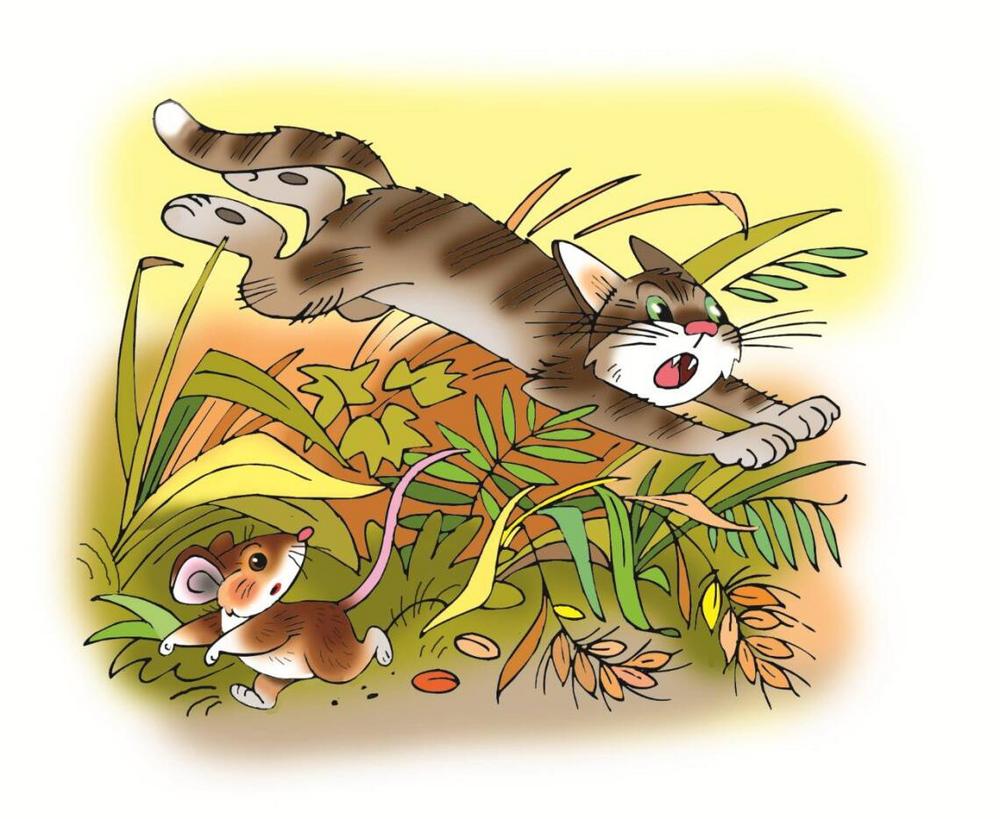 Сорвав несколько колосков на пшенич-ном поле, Полевая Мышка вдруг застыла от страха. Прямо на неё мчался Болотный Кот.