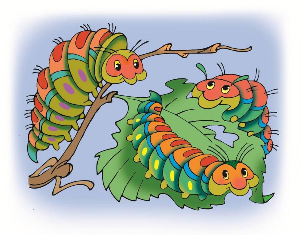 И тут же на самом кончике веточки, по-виснув, сладко уснули три Гусеницы, превра-щаясь в Куколок. Через несколько дней из Ку-колок выпорхнули три прелестных Бабочки.