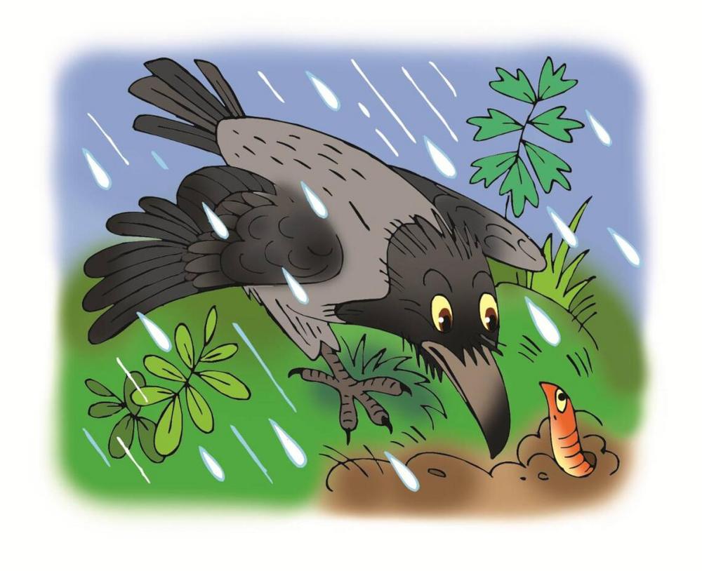 Как хорошо в дождик охотиться! тихо прокаркала смышлёная Ворона.