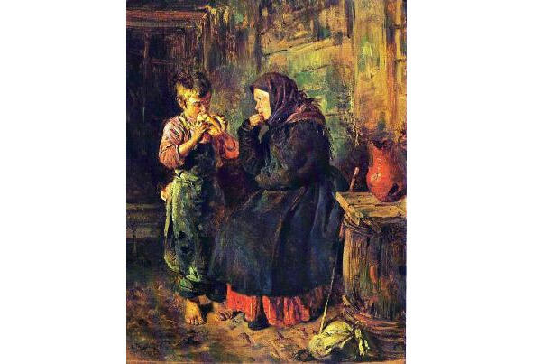 В капиталистическом обществе происходит дальнейшее расслоение классовой структуры на богатых и бедных, что отражается и на отношении к материнству и детству. Женщины-матери в привилегированных социальных группах пользуются благами цивилизации: от доступности качественной пищи до высококвалифицированной медицинской помощи. Потомство обучается в элитных заведениях и у частных наставников. Дети неимущих слоев посещают церковно-приходские школы или вообще лишены обучения, старших возрастов принимаются учениками и подмастерьями. На картине В.Е.Маковского показано посещение сына матерью, с грустью смотрящей на его изголодавшийся вид.