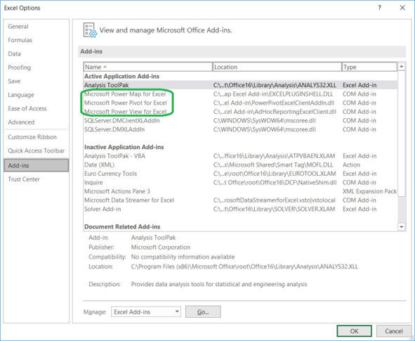 Выясните, входит ли Power Pivot в состав вашей версии пакета Microsoft Office.