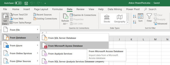 Data Get & Transform Data Get Data From Database From Microsoft Access Database (рис. 2.2).