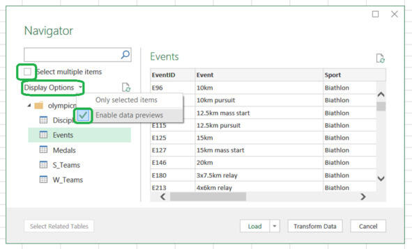 Display options Enable Data Previews.