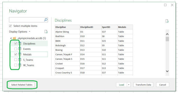 В окне выбора таблиц есть возможность найти таблицы, которые явно связаны друг с другом.