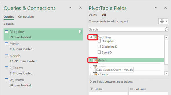 Задание. Сравните списки таблиц в запросах и в сводной таблице.