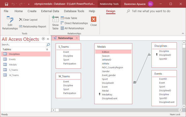 Задание. Откройте файл базы данных в Access и прочитайте описание функции Relationships.