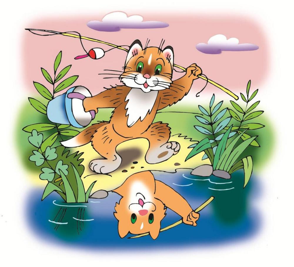 Пришёл Котёнок на берег речки с удоч-кой рыбку ловить. Глянул в речку и увидел в отражении такого же Котёнка с удочкой.