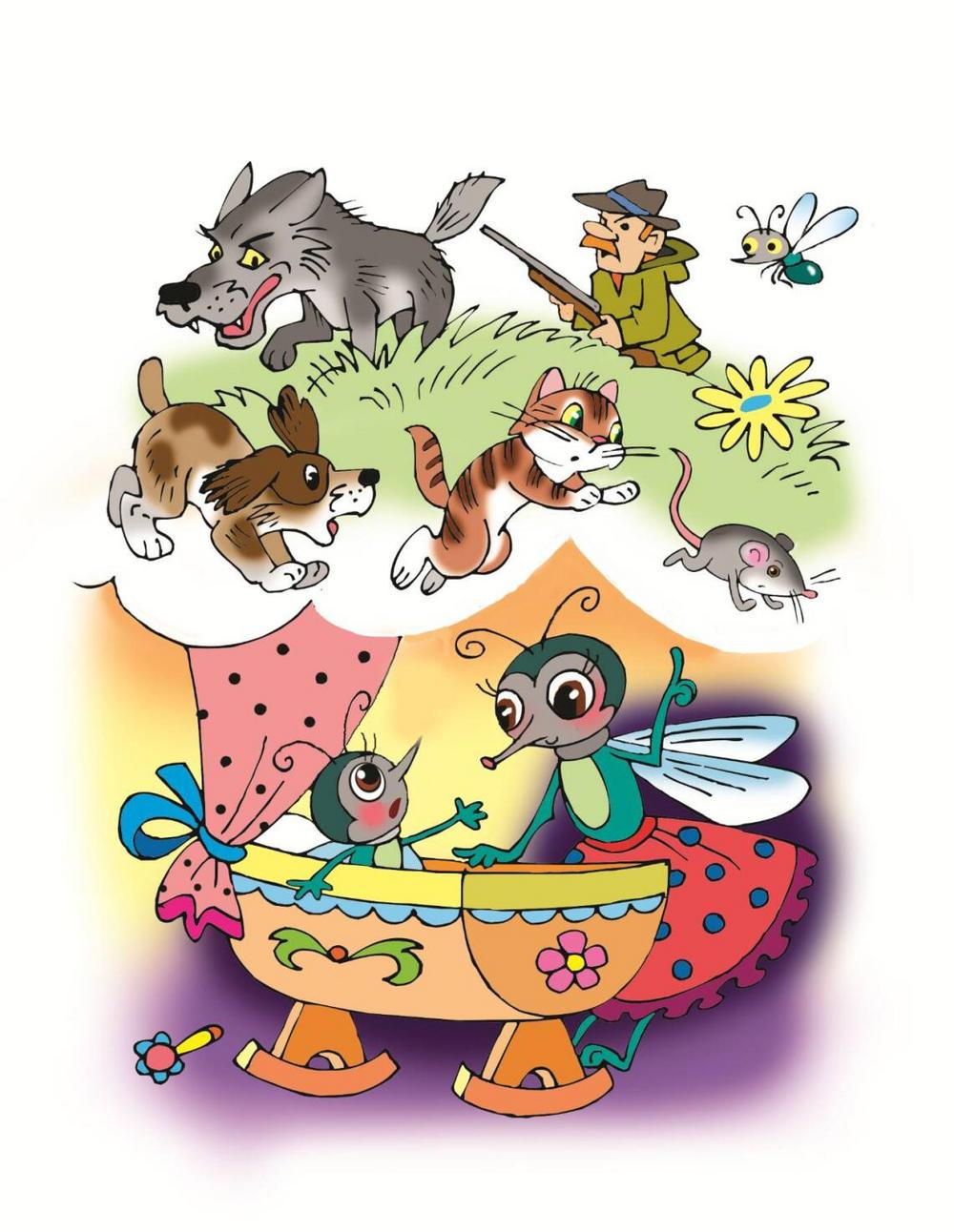 Летит в поле Бабочка, ищет цветы и опы-ляет их. Летит в поле Пчела, ищет соцветия и добывает нектар. Летит в поле Муха, ищет кучу навоза, и глядит: чем можно поживиться. Летит в поле Комар, ищет человека