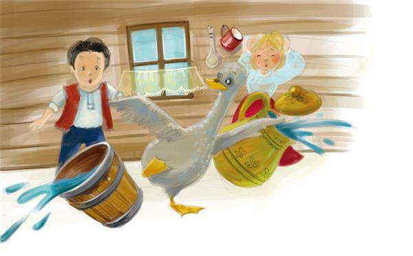 Но вот дети как-то раз задумали поиграть с утёнком, а он вообразил, что они хотят его обидеть, и со страха шарахнулся прямо в миску с молоком. Молоко расплескалось, хозяйка вскрикнула и всплеснула руками, а утёнок взлетел и угодил в кадку с маслом, а потом в бочонок с мукой. Ох, на что он стал похож! Крестьянка кричала и гонялась за ним с щипцами для угля, дети бегали, сшибая друг друга с ног, хохотали, визжали. Хорошо, что дверь была открыта: утёнок выбежал, кинулся в кусты, прямо на свежевыпавший снег, и долго-долго лежал в оцепенении.