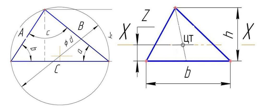 Центр описанной окружности на пересечении перпендикуляров проведенных от середин сторон треугольника. Центр вписанной окружности на пересечении медиан углов треугольника. Центр тяжести треугольника лежит на линии Х-Х параллельной основанию и расположенной на 1/3 высоты в точке пересечения медиан углов треугольника. Медиана делит противолежащую сторону пополам. Сейчас все привыкли к графическому интерфейсу пункт меню вычирают мышкой и щелкают кнопкой. Здесь применен древний интерфейс: Пункты меню пронумерованы цифрами ( номерами ). Чтобы выбрать пункт меню введите цифру номера пункта меню и нажмите Enter.
