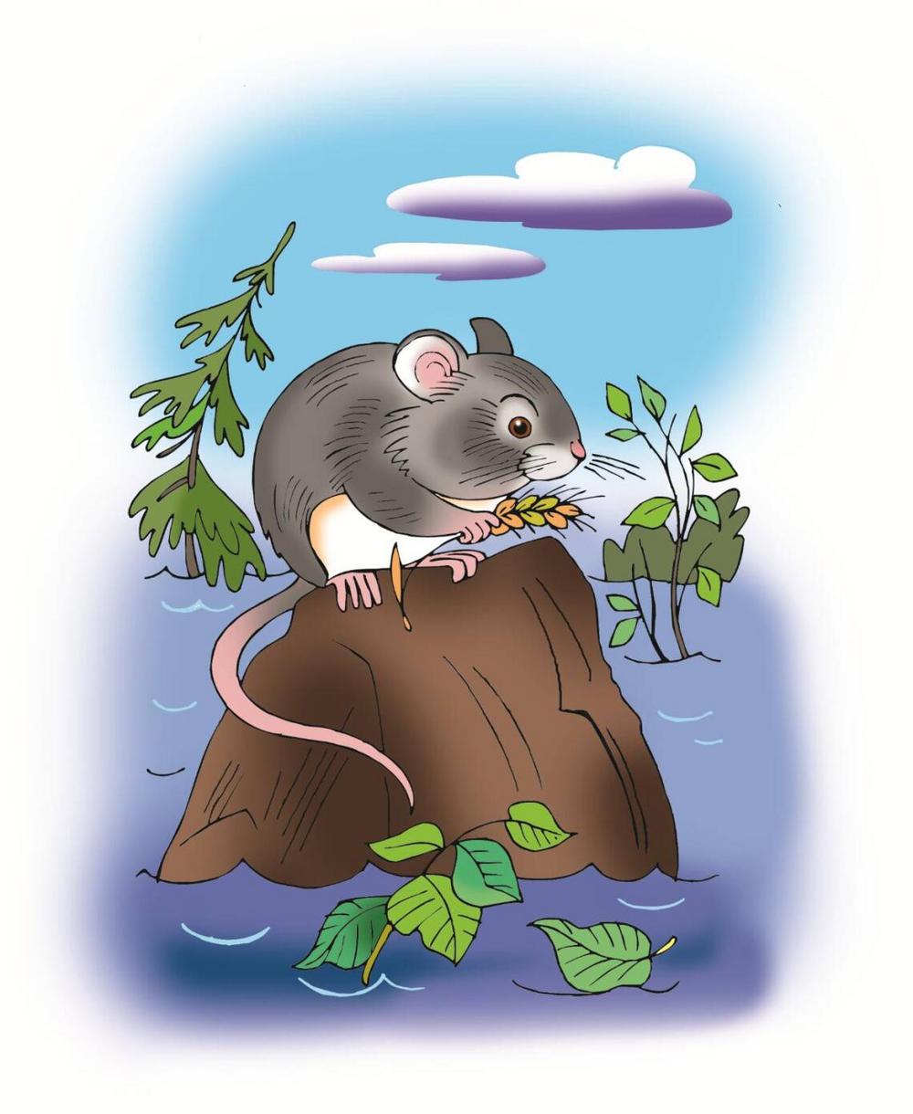 Взобрался бедный Мышонок на скали-стую возвышенность и стал просить помощи у птиц, да получив отказ, сник, пригорюнился и уснул.