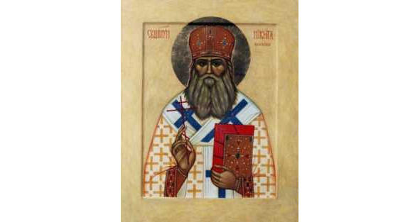 Величаем тя,/ священномучениче Леониде,/ и чтим честная страдания твоя,/ яже за Христа/ во утверждение на Руси Православия// претерпел еси.
