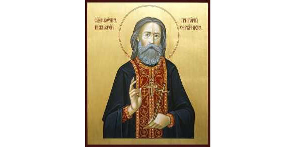 Величаем тя,/ священномучениче Григорие,/ и чтим честная страдания твоя,/ яже за Христа/ во утверждение на Руси Православия// претерпел еси.