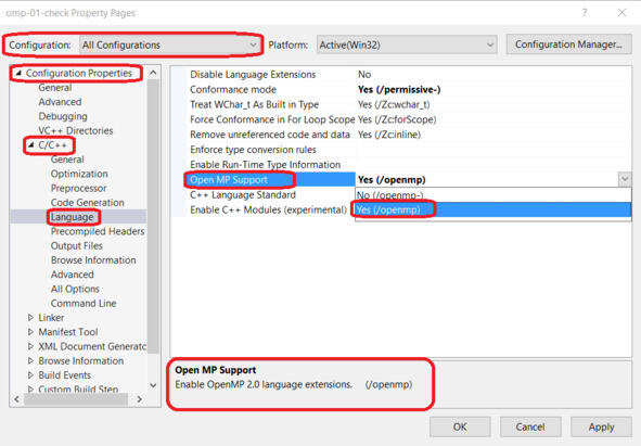Configuration Properties C/C++ Language OpenMP Support Yes.