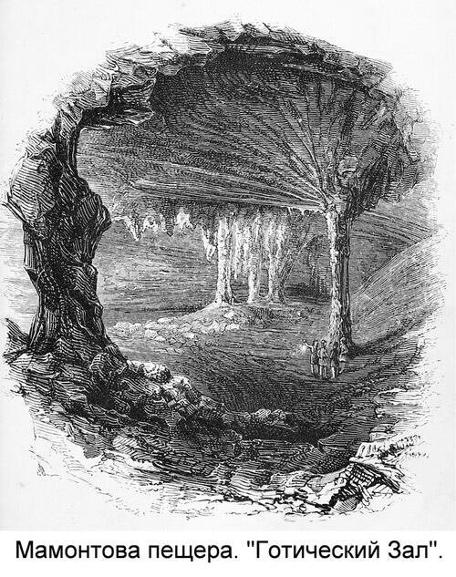 На следующий день в обществе еще одного посетителя я отправился в Мамонтову пещеру. Мэтт, наш немногословный чичероне[4], прослужил гидом уже 25 лет, и за это время, как было подсчитано, прошел под землей более 1 500 миль. Это звучит не столь фантастично, если учесть, что все проходы великой пещеры в совокупности составляют более 150-ти миль и что в ней 226 уже открытых залов. Наша экипировка состояла из двух ламп для проводника и по одной у каждого из нас. В нескольких местах пещеры хранятся несколько бочек с маслом, поскольку крайне важно, чтобы лампы посетителей этого лабиринта тьмы должны быть всегда заправлены и постоянно светить.