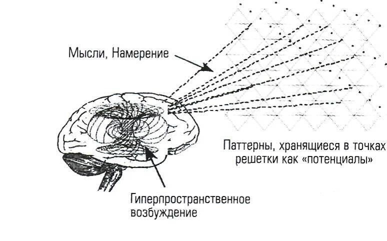 Китайские мастера техники тай-цзы могут производить генерирование мозгом информационных полей, имеющих очень большую величину и на всю длину вертикальной трубы завихрения внутри тора, в науке это известно как мост Эйнштейна-Розена. Порожденное мозгом мощное торсионное поле, а также Сила Воли, выраженная в определенном Намерении совершить задуманное, позволяет им входить в резонанс с Всемирной Космической Сетью, физическим вакуумом, и с помощью источника излучения, ладоней рук, производить исцеление больного. Эти мастера, если необходимо, могут даже сразить противника мощным выбросом импульса энергии. Мозг и черепную коробку можно представить, как кристаллическую резонирующую органическую структуру, антенну, излучатель, который управляется Низшим Разумом, Низшим Сознанием человека, которое, имеет взаимосвязь с Высшим Разумом, с Высшим Сознанием человека, его Душой, Духом. Величина поля генерирования мозга зависит от совместной работы всех отдельных частей мозга, его желез эндокринной системы кровообращения: таламуса, гиполамуса, гипокампа, миндалин, а также совместного функционирования гипофиза шишковидной железы и каротидной железы. В идеале, поле мозга должно стремиться быть вытянутом на всю длину цилиндрической трубы тора, моста Эйнштейна-Розена. Естественно, что максимальная активность мозга и способность генерирования поля идеальной конфигурации определяется степенью его духовного развития, общим здоровьем, как тела так и мозга, и постоянной тренировкой активности мозговой деятельности. Именно тренинг мозга приводит к увеличению завихрений, извилин мозга, к активизации его дремлющих нейронов, а значит и к общему увеличению активной части всего мозга. Информация Общего Банка данных Бога Отца, которая хранится в пространстве в виде свернутых голографических паттернов, микро информационных полей, в Хрониках Акаши, принимается мозгом, как приемником и передается в электрические сигналы мозга, где далее она расшифровывается и переводится Низшим Сознанием в виде образов. Вероятнее всего, что именно микро трубчатая структура мозговых клеток и вода, содержащаяся внутри микротрубок, может становиться высокоструктурированной и высокоорганизованной, способной запоминать, хранить полученную информацию. Этот процесс называется мыслительной деятельностью мозга. Процесс хранения и выдачи информации мозгом аналогичен жесткому диску памяти современного компьютера, выполненного на жестких кристаллах. Современные ученые создали уже сегодня жесткий диск памяти, основанный на биологической клетке. Это устройство копирует деятельность мозга человека. И это есть определенное, перспективное направление развития науки будущего. Процесс структурирования воды в микро трубках мозговых клеток может производиться самим человеком с помощью своего сильного Волевого Усилия и определенного Намерения. Также этот процесс может осуществляться с помощью внешнего источника: поля Целителя и созданного им торсионного паттерна, или же с помощью внешних технических устройств, торсионных генераторов правого или левого вращения. Источники внешнего поля, целитель или торсионный генератор, активизируют мозг пациента, оказывая благотворное воздействие, или наоборот снимают с него информацию, уменьшая общую энтропию человек