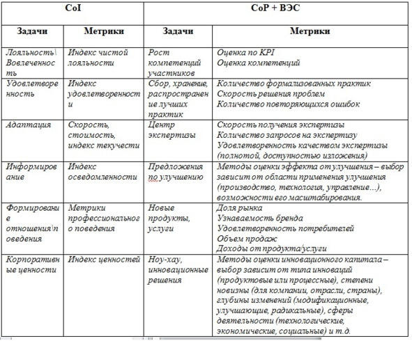 Активно взаимодействуя и изучая опыт внутри- и вне- корпоративных экспертных сообществ через проекты «Лидеры российских экспертных сообществ» (Олег Лавров) и «Community Hub» (Юлия Крушинская), одной из своих первоочередных задач ассоциация КМ Альянс видит в том, чтобы предложить концептуальную модель формирования результативного ВЭС и сформировать минимальный набор КМ-инструментов, позволяющих реализовать ее на практике с управляемым результатом. Рабочий вариант модели представлен в Таблице 2.